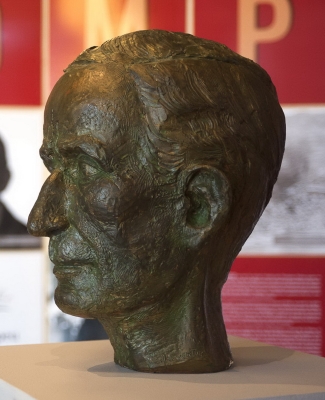 Cap de fang amb pàtina de bronze de Pompeu Fabra. Elisa Reverter tenia aquest bust al seu estudi, a la masia de can Butinyà.