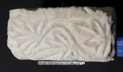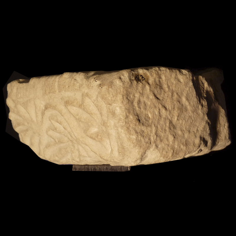 [Siglo X primera mitad siglo XI]Imposta formada por un fragmento de piedra paralepipédica, esculpida por una de las caras con una decoración de pámpulos de vid unidos por un tallo ondulante, siguiendo un modelo clásico de época bajo-imperial.