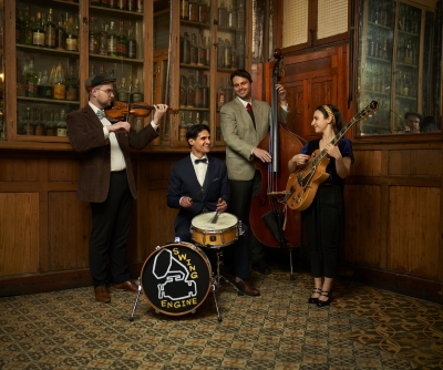 Esta formación de swing y jazz clásico, formada en esta ocasión por violín, guitarra y contrabajo, llenará los rincones de la fábrica con un ritmo sugerente y acotado que nos invitará a bailar, al compás de músicas tan conocidas como las de Stuff Smith, Louis Armstrong o Charlie Christian.