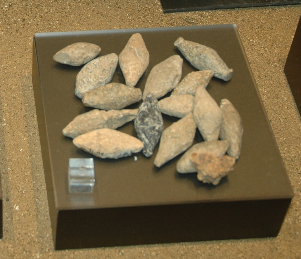 También se han conservado proyectiles de honda (glandes), unas piezas de plomo de forma cónica-romboidal que se lanzaban con una herramienta consistente en una cuerda o piel que permitía proyectar los objetos a larga distancia. Los honderos baleares fueron famosos por su destreza con esta arma. Participaron en las guerras púnicas, en un primer momento junto a los cartagineses, pero también lo hicieron junto a los romanos, ya que lo hacían como mercenarios, y también estuvieron presentes como tropas auxiliares de infantería ligera con Julio César en la Guerra de las Galias. La honda era una de las armas más mortales, pero el intervalo entre proyectil y proyectil era mayor que el de las flechas y dardos, y poco a poco, fue cayendo en desuso.