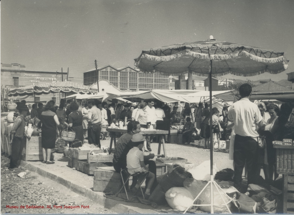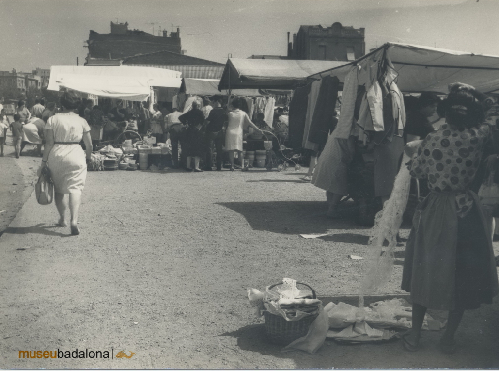 El lugar donde se hacía el mercado que aparece en la fotografía es la plaza dels Països Catalans, frente al edificio de los salesianos, donde justamente se había trasladado el año anterior, o sea, en 1966.