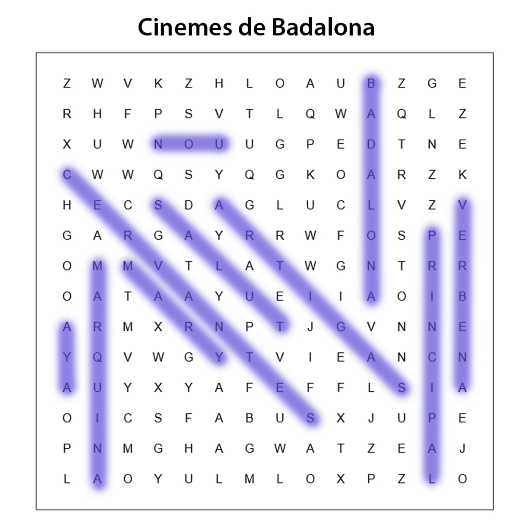En medio de toda la celebración del Día Internacional de los Museos, no penséis que nos hemos olvidado de nuestro pequeño reto diario … hoy nos toca resolver la sopa de letras con los nombres de 10 cines de Badalona.