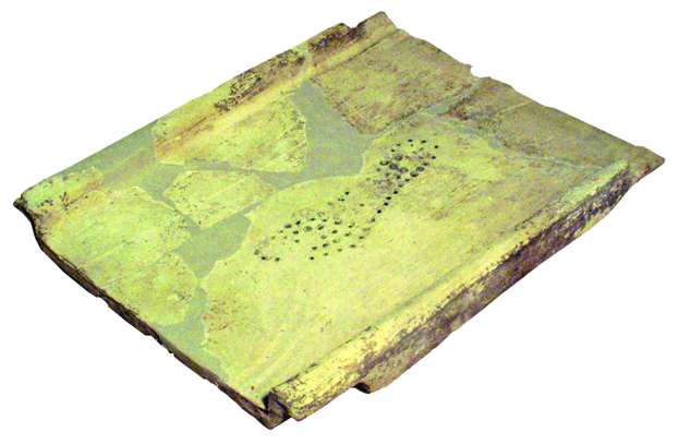 En cuanto al equipamiento (impedimenta) de los soldados, en el Museo conservamos algunos elementos, no tanto de la parte del cuerpo -donde sobre la túnica llevaban la cota de malla o bien la lorica segmentata (a partir del siglo II dC) -, ni tampoco tenemos ninguna casco. Del calzado (caligae), conservamos una huella en una teja, donde podemos apreciar la distribución de las tachuelas en la suela del zapato para tener más agarre en el campo de batalla. Y tenemos también muestras en cuanto al armamento.
