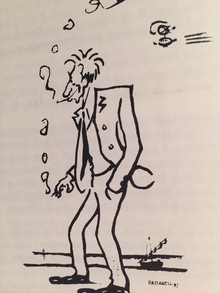 El autor de estas caricaturas, Jaume Passarell Ribó (Badalona 1889-Barcelona 1975) fue un destacado dibujante humorístico y escritor. De formación autodidacta, se presentó en Badalona con dos exposiciones (1911, 1912) y colaborando con dibujos en la prensa local. Desde 1911 trabajó en Barcelona, donde se integró en los ambientes de la bohemia. Publicó caricaturas y chistes en Papitu, L’Esquella de la Torratxa y La Campana de Gracia. También en revistas infantiles y deportivas y en los diarios La Publicidad y La Nau. En los años treinta se incorporó como redactor en el diario La Publicidad y apareció su libro más notable, Cien muñecos y algo de literatura (1930), en el que compaginaba textos y dibujos sobre personajes de la época. Precisamente en este libro corresponden la mayor parte de caricaturas que os hemos mostrado.