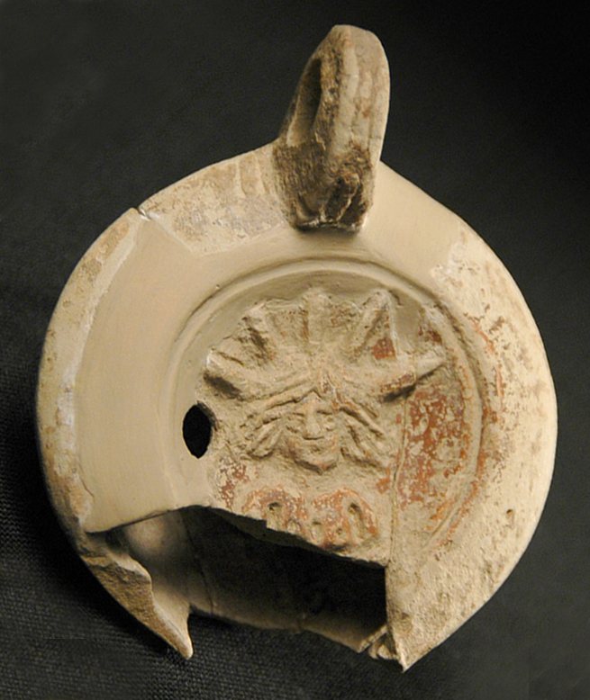 Llàntia amb el símbol del Sol invictus. Museu de Badalona