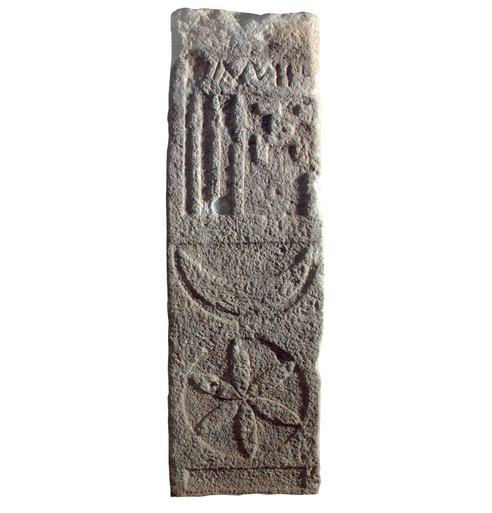 L’estela que apareix a la imatge, trobada als anys cinquanta en enderrocar la masia de Can Peixau, de Badalona, és un magnífic exemple d’aquest culte. Es tracta d’una peça ibèrica, tot i que ja d’època romana, atès que es pot datar a final dels segle II-principi del I aC. A la part superior d’aquesta peça hi ha una línia escrita en grafia ibèrica, i a sota es veuen tres llances verticals amb una esvàstica –un altre símbol antic– a la dreta. A la meitat inferior apareix la representació de la lluna creixent i del sol com una roseta de sis puntes encerclada.